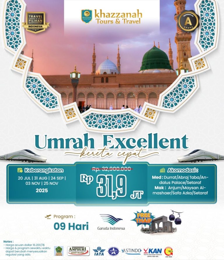 Berdiri sejak 2001 Khazzanah Tour hadir terobosan baru dalam keberangkatan ibadah umroh dan haji dengan prinsip utama “Melayani Sepenuh Hati”, sehingga nanti calon jamaah yang ingin berangkat menunaikan ibadah suci dapat memperoleh keamanan, kenyamanan, kepastian keberangkatan dan juga kenangan yang terbaik selama perjalanan tersebut serta mendapatkan tujuan utama yaitu mendapatkan pahala yang besar dalam umroh yang mabruroh. Beberapa program yang telah digagas oleh Khazzanah Tour Travel diantaranya : Paket Umroh Promo, Paket Umroh Regular, Paket Umroh Plus, Haji Plus, dan lain sebagainya.