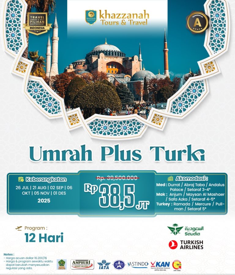 Khazzanah Tour resmi dan terdaftar di KEMENAG RI dan telah berdiri sejak tahun 2001
